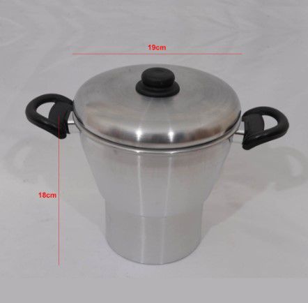 A Cuscuzeira de Alumínio é o utensílio ideal para quem gosta de apreciar um delicioso Cuscuz. Ela possui extrema qualidade e durabilidade, sendo um produto que garante a perfeita conservação dos alimentos. Ela vem com três peças, a primeira é a própria cuscuzeira, a segunda é uma "grelha", onde você pode colocar a massas do cuscuz, para que o alimento fique separado da água do cozimento e a última peça é a tampa que facilita no cozimento do seu produto.